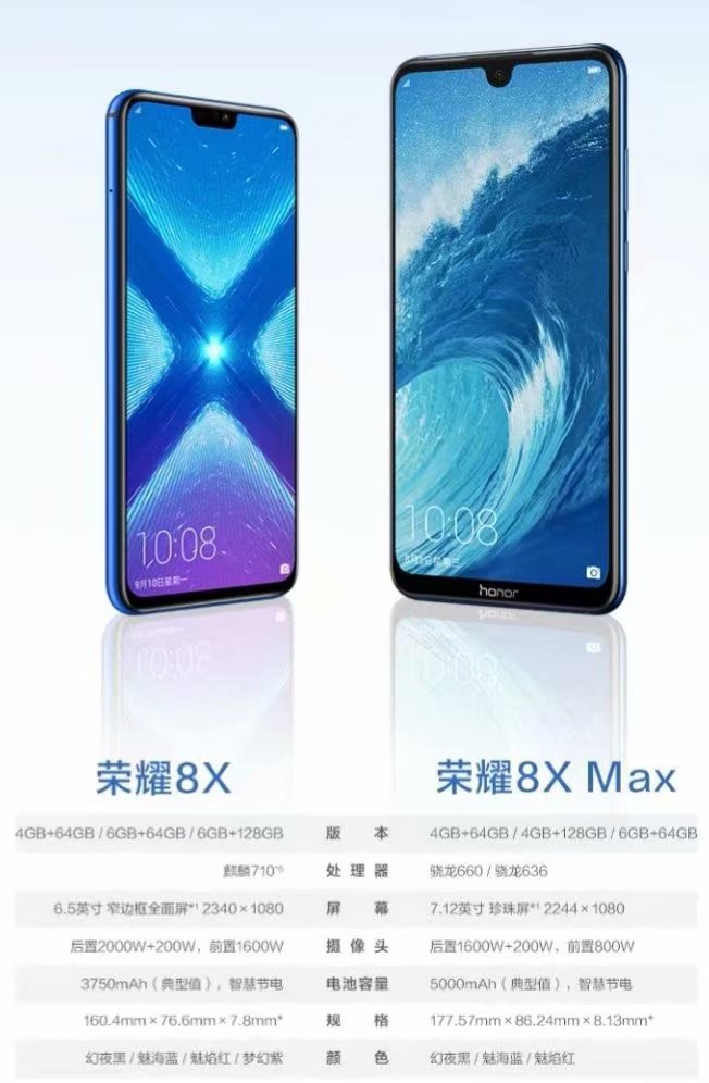 华为荣耀8X Max 7.12英寸珍珠屏(可以装口袋里),屏占比90%,骁龙660处理器,6GB+128GB内存,降价600元,脸部解锁,指纹解锁,防伪基站,5000mAh容量大电池,9V/2A快充,德国莱茵TÜV低蓝光认证,杜比全景声音效,AI智能拍照。现货魅海蓝色。安装好350多个周易软件,可以货到验货付款,可以先视频聊天看货,看实际分析。