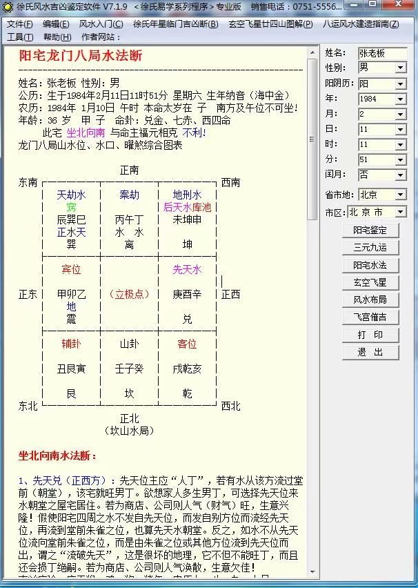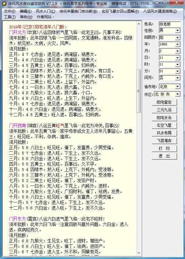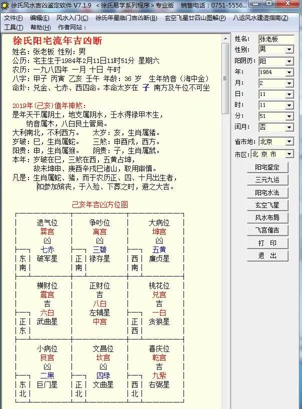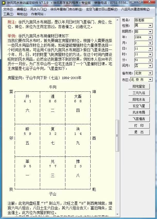 电脑版《徐氏风水吉凶鉴定软件》V7.1.9版,无时间限制。